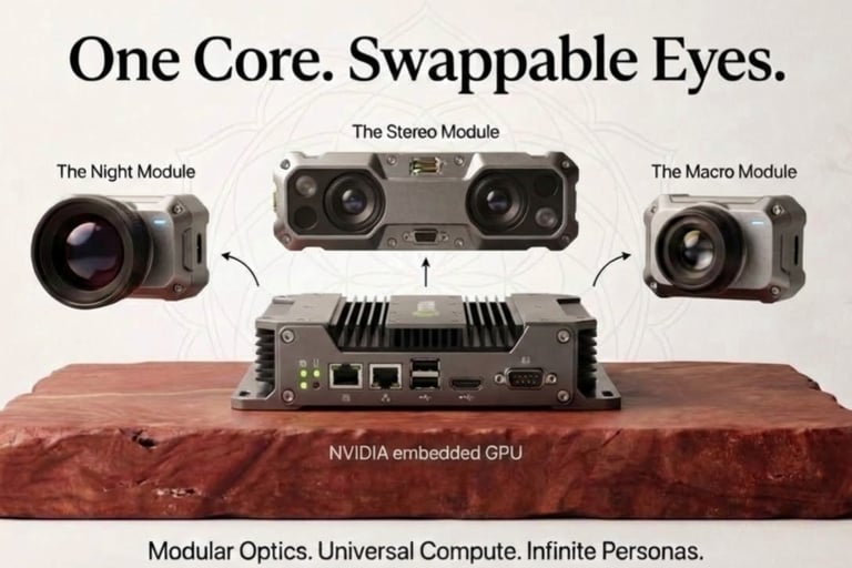 The multi-purpose hardware utilizes a "Universal Core" powered by NVIDIA Jetson GPU, which can be instantly repurposed for different industries through downloadable personas.