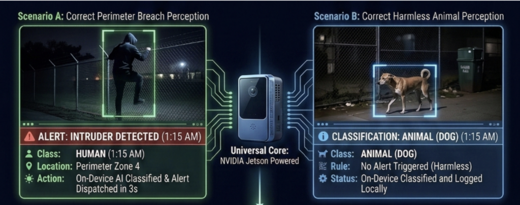 Consider the difference between a legacy CCTV system and the Intelligent Sentry at 1:15 AM. In a traditional setup, the camera merely records the event for a security audit sixteen hours later—documenting a failure rather than preventing it. With the Intelligent Sentry, the on-device AI classifies the intruder within three seconds, dispatching a precise alert to the response team immediately; the incident is resolved in minutes.